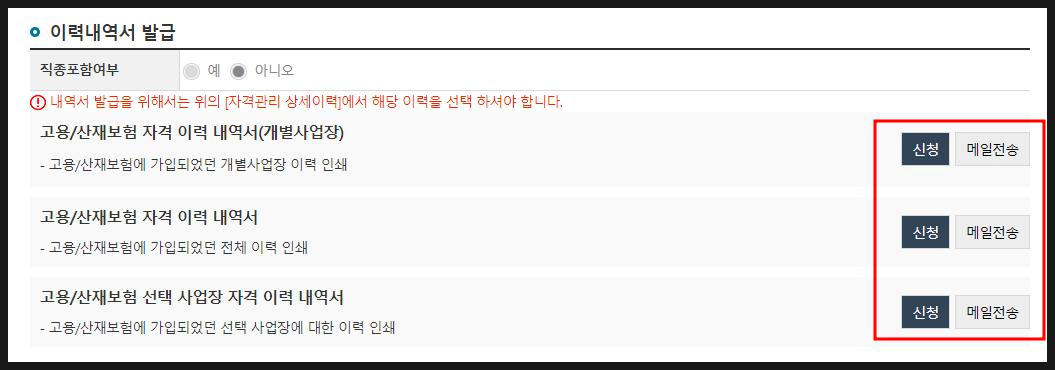 여기까지 들어오셨다면 정상적으로 전부 되었다는 겁니다, 개인정보, 최근 자격 현황, 상세 이력 등 모두 확이 이 가능합니다. 보험 구분은 산재, 고용이 있으며, 여러 내용중 필요한 이력에 체크후 확인을 합니다. 회사에서 필요한 부분 이나 본인이 필요한 부분 체크 하여 확인이 가능 합니다.