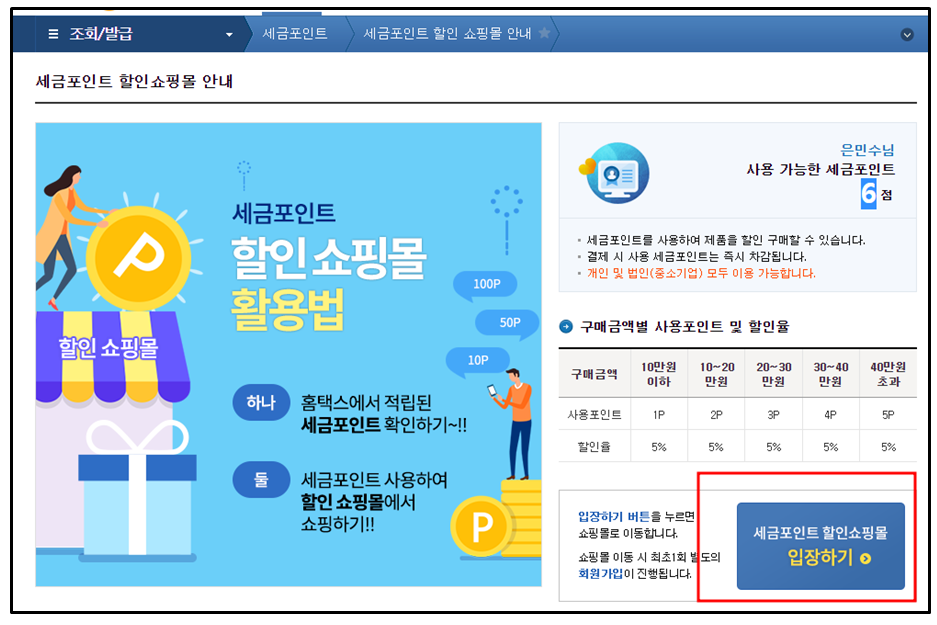 1. 세금포인트 할인 쇼핑몰 안내 메뉴