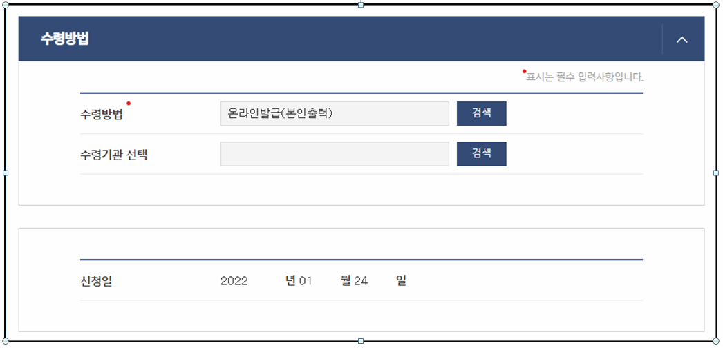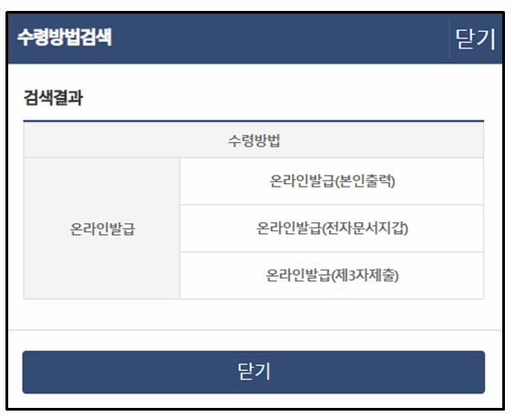 여기에서 수령방법에서 검색을 누르시면 3가지 항목이 나옵니다.