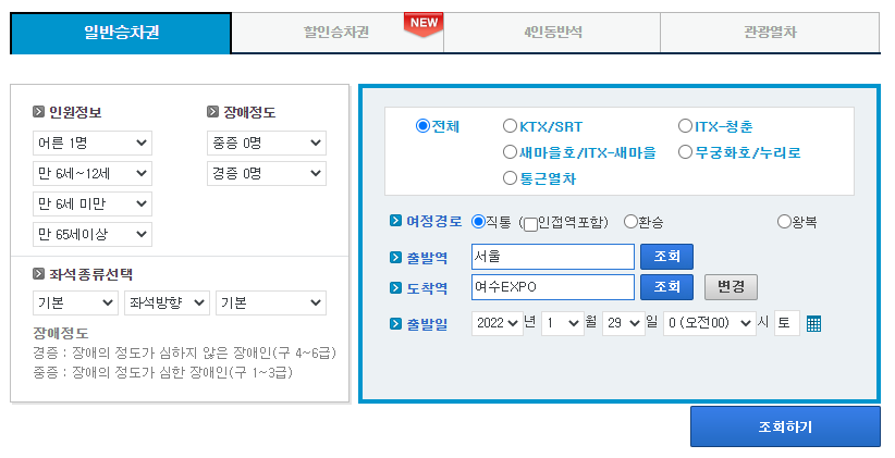 아쉽게도 벌써 KTX, ITX, 새마을, 무궁화 모든 열차가 매진 되었습니다. 이럴 줄 알았으면 미리 포스팅해서 제 글을 보는 분들에게 도움을 드렸어야 하는데 너무 안타까운 마음이 듭니다. 그래도 중간에 누가 취소할 수도 있으니깐 1월 29일 토요일 바로 예매할 수 있는 링크 남겨 드리겠습니다.