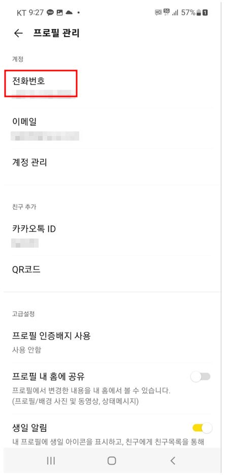 현재 등록된 본인의 카카오톡 전화번호 변경하는 방법을 확인할 수 있습니다.