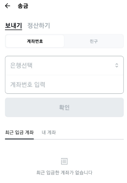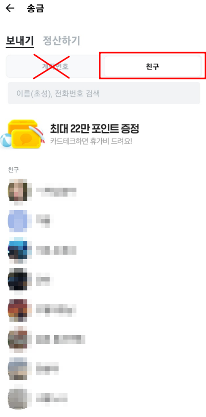 1. 송금 > 친구 (계좌번호가 아닌 친구 선택)