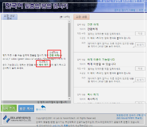 이런 거 빼고는 저는 한국어 맞춤법 검사기는 부산대학교에서 개발한 이 프로그램이 가장 우수한 거 같습니다. 개인적인 생각이지만 매우 만족하며 사용하고 있습니다.