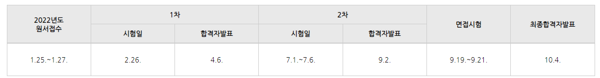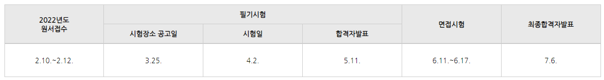 2022년 국가직 9급 공무원 시험일정을 살펴보면 이미 지난 2월 10일부터 12일까지 3일간 접수를 진행했으며, 곧 있을 3월 25일에 필기시험장소 공고가 있을 예정입니다. 이후 4월 2일 필기시험이 치러진 뒤, 한 달여가 지난 5월 11일 합격자 발표가 있습니다. 가산점 등록을 해야 하는 수험생은 시험 당일인 4월 2일 오후 1시부터 이틀 뒤인 4월 4일 오후 9시까지 등록을 진행할 수 있습니다.