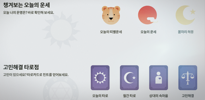 삼성생명 무료운세 에서는 2022 신토정비결과 평생운세, 월간종합운세, 오늘의 띠별운세, 오늘의 운세, 꿈자리 해몽, 오늘의 타로, 월간타로, 상대의 속마음, 고민해결, 정통궁합, 운명의 사람찾기 등을 볼 수 있어요.