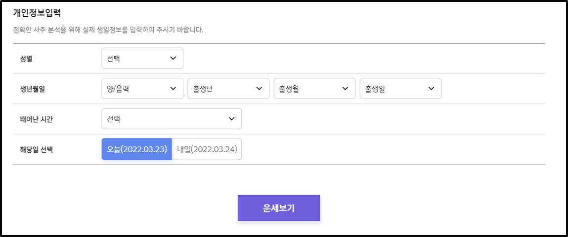 신한생명 무료운세 중 가장 많은 분들이 이용하는 메뉴라고 할 수 있는데요. 월별 총론과 재물, 애정, 건강 등 모두 7가지로 구분해 세세한 설명을 해주는 것이 특징입니다. 이를 알아보기 위해서는 생년월일 및 생시 등 관련 정보만 입력하면 됩니다.