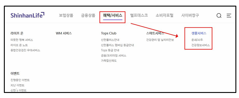 항목으로 이동하면 신한생명 무료운세 서비스 이용이 가능합니다. 무엇보다 좋은 것은 별도 로그인 없이 무료로 활용할 수 있다는 점인데요. 크게 월간 조합 운세와 평생 운세, 토정비결, 부자운 관련 카테고리로 나뉘어 있습니다. 이외에도 생활운세와 애정/궁합운을 살펴볼 수 있는 별도 메뉴도 마련되어 있습니다.